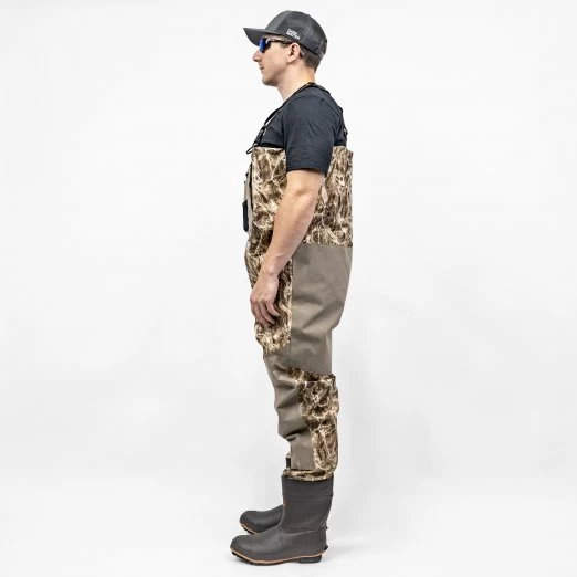 Caddis Mossy River Breathable Bootfoot Chest Waders have the Mossy River pattern combined with tan parts. They are available in men’s size 7-13. Included is a wader belt and repair kit.