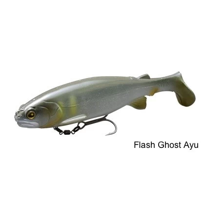 Flash Union Union Swimmer 155 Swimbaits are 6″ in length and weigh 1 1/2 oz. They are pre-rigged with a treble hook. Choose from flash ghost ayu, flash ghost rainbow trout and silver chart. They are made in Japan.