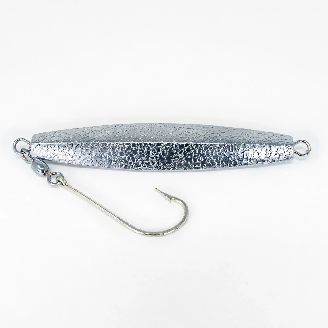 Diamond Jigs attract big fish and work best when reflecting a lot of light. These diamond shaped jigs feature a hammered finish that reflects significantly more light, making them irresistable to big striped bass and blue fish. Diamond jigs are available with a silver or gold hammered finish. Great for catching fish from a boat or from the beach!