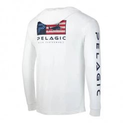 The Pelagic Aquatek Icon Long Sleeve Performance Hoody is a wonderful fishing shirt. It’s got a really soft feel to it that feels nice against your skin. This is a performance shirt with a hoody that will provide extra sun protection than if you just had a shirt. It features a loose cut for extra comfort when you are fighting a big tuna! The Aquatek Icon provides UPF 50+ sun protection, wicks moisture away from your skin to keep you cool and has vented underarms for additional cooling. There really is nothing worse than overheating while you are on the water. It saps your energy and that means less fishing. The hoody is stain resistant and antimicrobial so you’ll be able to keep it clean and in good condition for a long time. The shirt itself is white with an Americamo graphic on the rear, a classic Pelagic logo on the front left chest and Pelagic down the right arm. It’s a clean look with a little bit of flair that will let everyone on the boat or at the beach know that you are passionate about offshore fishing. If you’re looking for a new fishing shirt that is going to perform as god as it looks, buy a Pelagic Aquatek Icon Long Sleeve Performance Hoody.