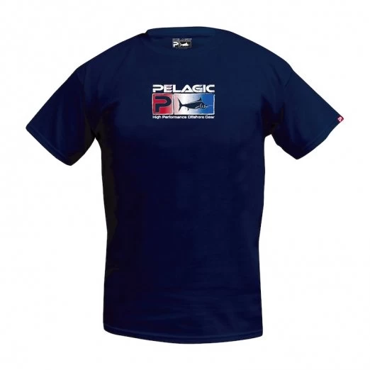 Pelagic Deluxe USA Fade Fishing T-Shirts are available in sizes M-2XL.