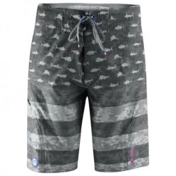 Pelagic Patriot Boardshorts flips the Americamo pattern to monochrome. This gives them an incredibly cool look. If the Americcamo pattern is too in your face, but you love the fish camo, the Patriot is the way to go. Pelagic has thrown in a dash of color in the drawstrings and a custom patch but otherwise, these shorts are covert. Pelagic Patriot Boardshorts are made for high performance on the water but you can wear them around town too. They are constructed of Pelagic’s Sharkskin Dobby Super-Stretch material that moves with your body. They are ultra-lightweight, dries quickly and has anti-microbial properties. There are four all purpose pockets for all your gear. If you’re looking for a comfortable pair of fishing shorts that look great, scoop up a pair of Pelagic Patriot Boardshorts!
