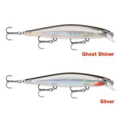 Rapala Shadow Rap jerkbaits are available in 4 3/8″ long and weigh 7/16 oz. They are available in ghost shiner and silver.