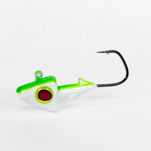 S&S Fishaholic TRI Jig Heads take triangle shaped jig heads to the next level! Designed by Rich “Fishaholic” Janitschek, they are made in the USA and feature super sharp Owner Barbarian hooks that will lead to more hook ups. They also have 3D eyes that are covered in two layers of epoxy so they won’t come off. These hand-painted jig heads are world class! We have added larger sizes that are built around an 8/0 or 9/0 VMC Barbarian hook. Perfect for larger soft plastics.