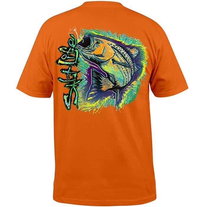 The Salt Life Bold Striper Short Sleeve T-Shirt is a great striped bass shirt! This 100% preshrunk cotton tee has an aggressive image of a striped bass on the back that is very colorful! It makes you want to go catch some stripers! On the front is the Salt Life logo. Salt Life Bold Striper Tees are really comfortable and you will find yourself reaching for this t-shirt all the time! Wear it on the water or when hanging out with your friends. As soon as they see you, people will know that you love fishing for striped bass and that you are living the Salt Life!