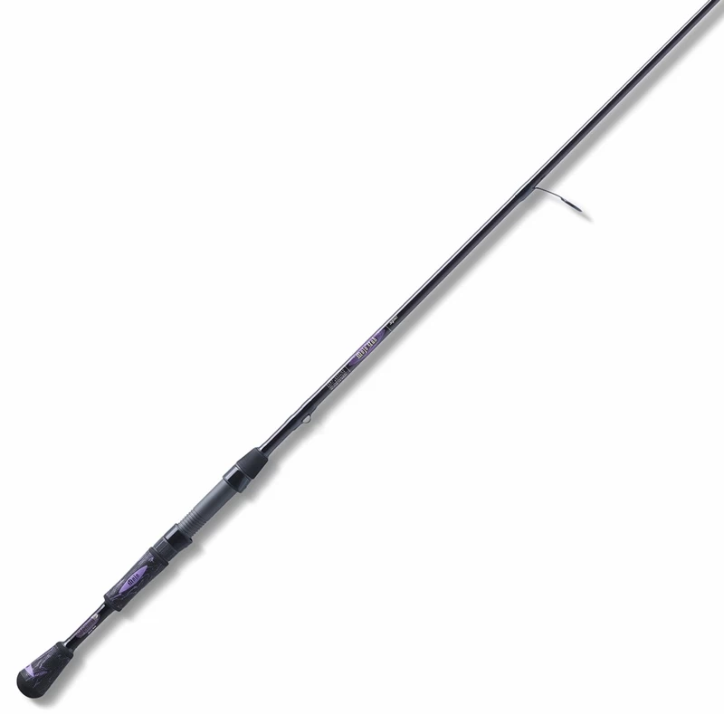 St Croix Mojo Yak Spinning Rods are available in six awesome models. They are gray with purple accents. Comes with a five year warranty.